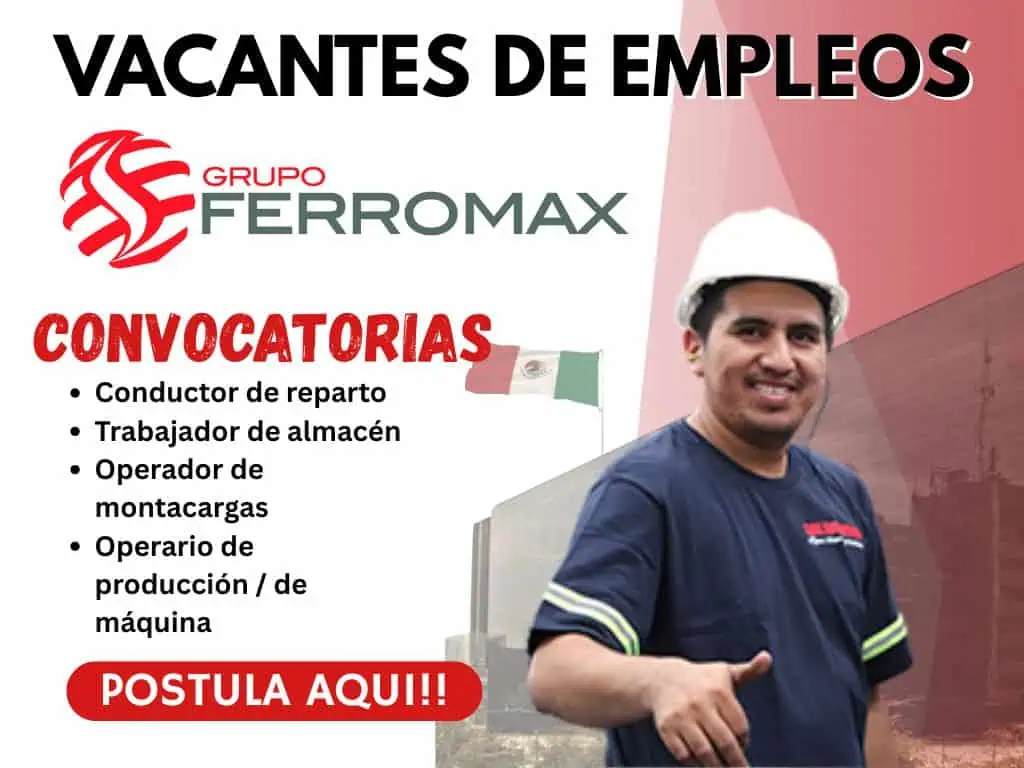 La convocatoria de empleos en FERROMAX 2026 es una gran oportunidad para quienes buscan estabilidad, aprendizaje constante y desarrollo profesional dentro de una empresa líder en la industria del acero 🏗️. Tanto si estás iniciando tu carrera laboral como si buscas un nuevo reto profesional, FERROMAX ofrece un entorno donde el talento es valorado y reconocido ⭐.