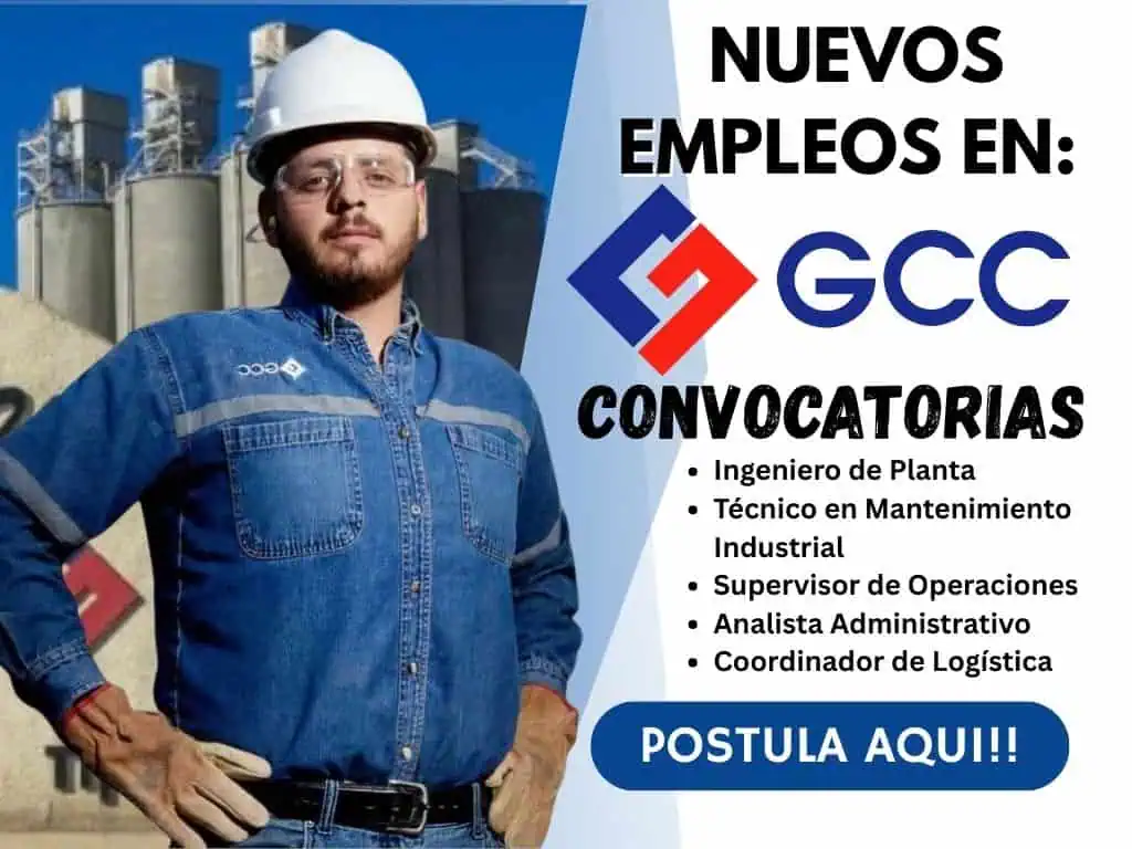 Si buscas un empleo que combine beneficios, estabilidad y crecimiento profesional, la convocatoria de empleos GCC es la oportunidad ideal para impulsar tu carrera en la industria cementera 🏭✨.